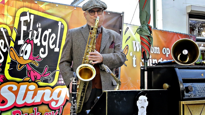 Als One Man band weet hij u in de sferen van de Roaring Twenties te brengen.